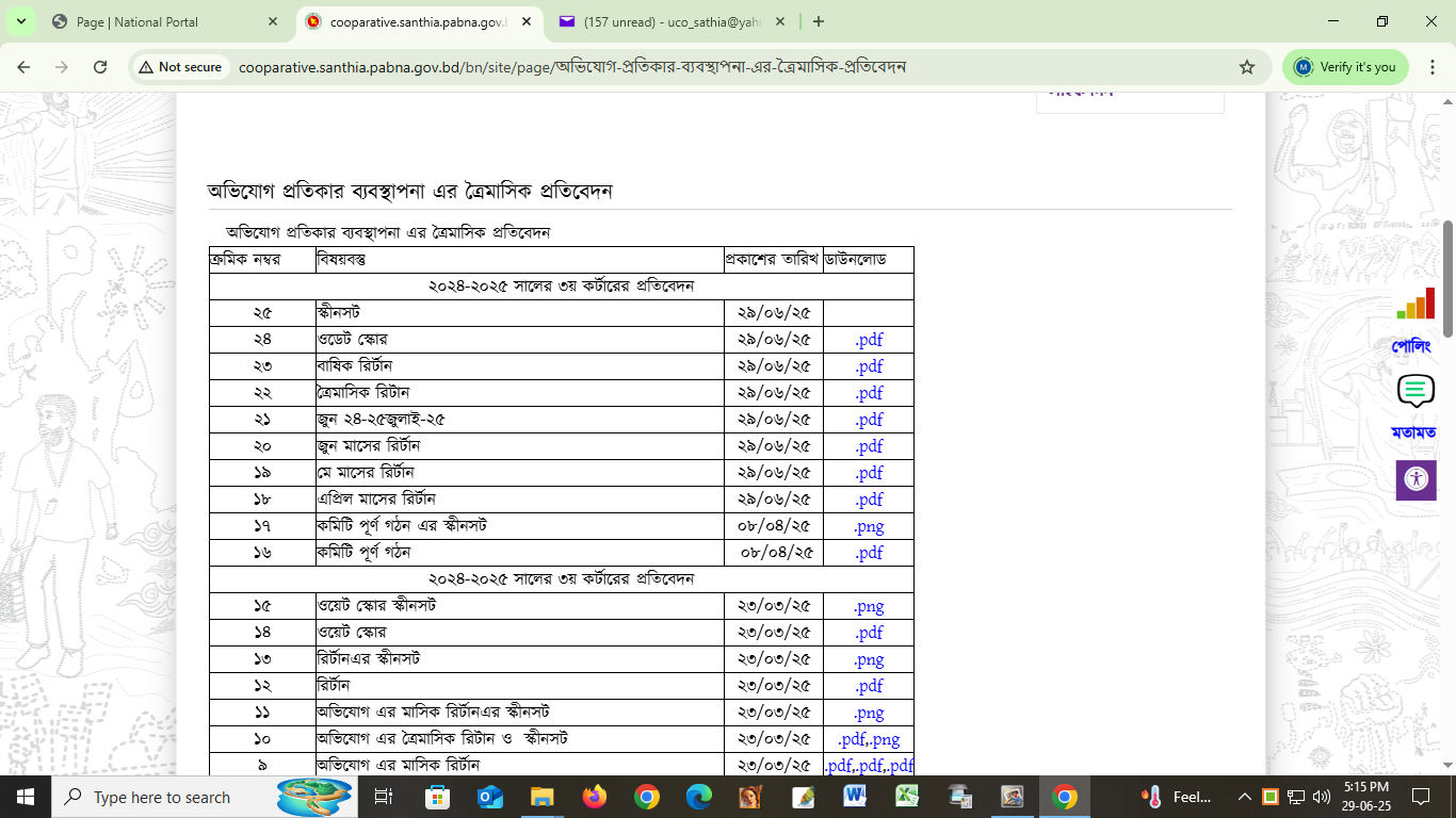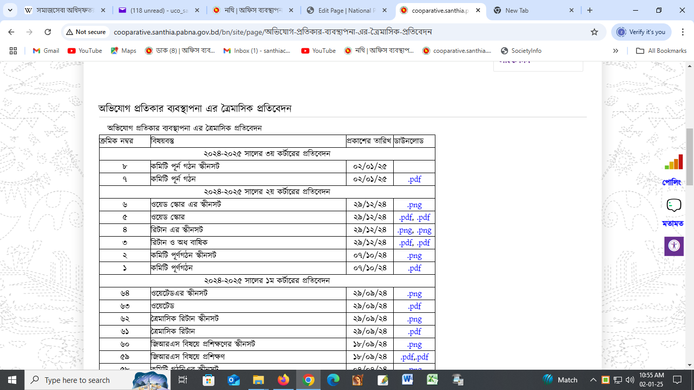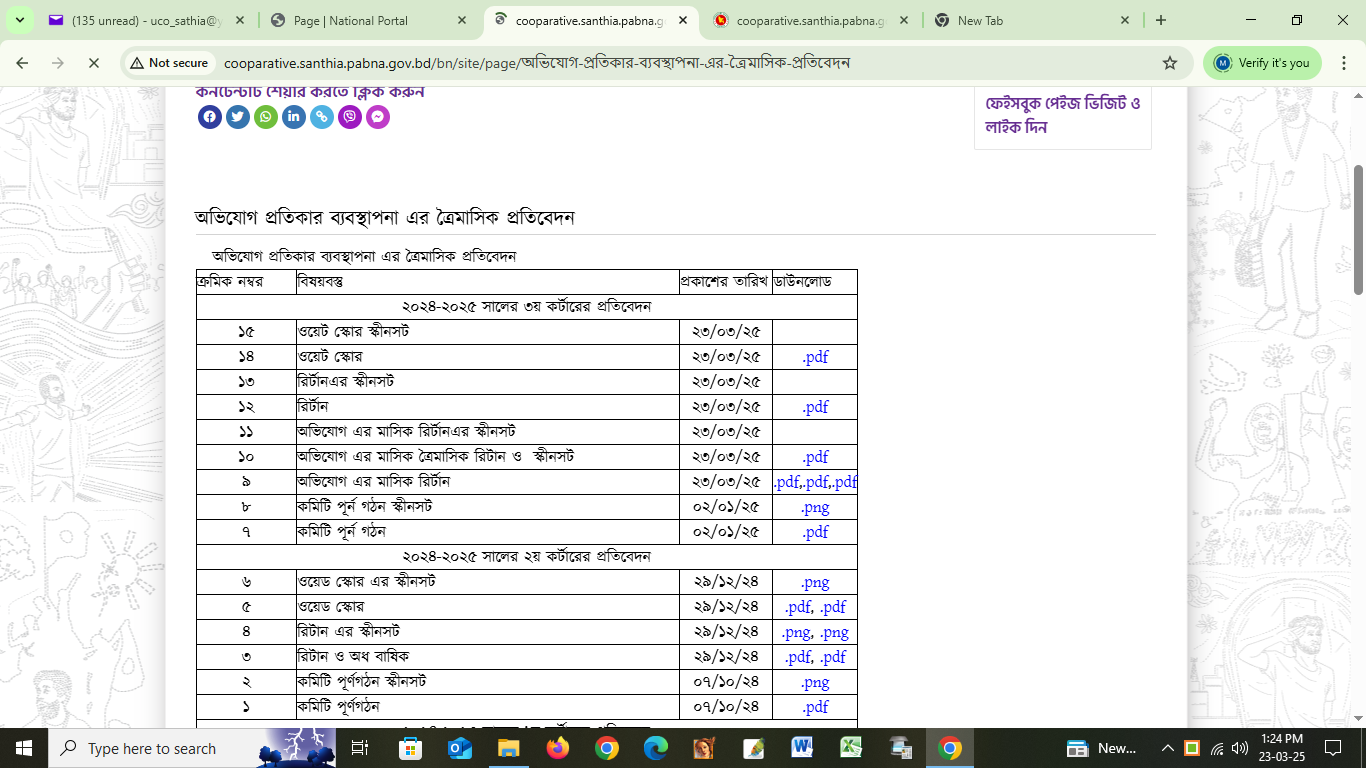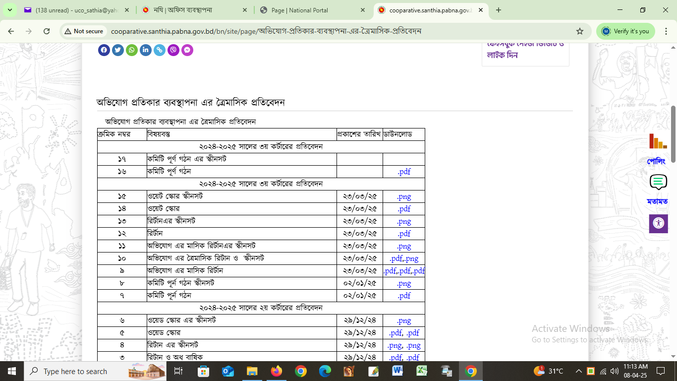 | ১০ | অভিযোগ এর ত্রৈমাসিক রিটান ও স্কীনসট | ২৩/০৩/২৫ | .pdf,.png |