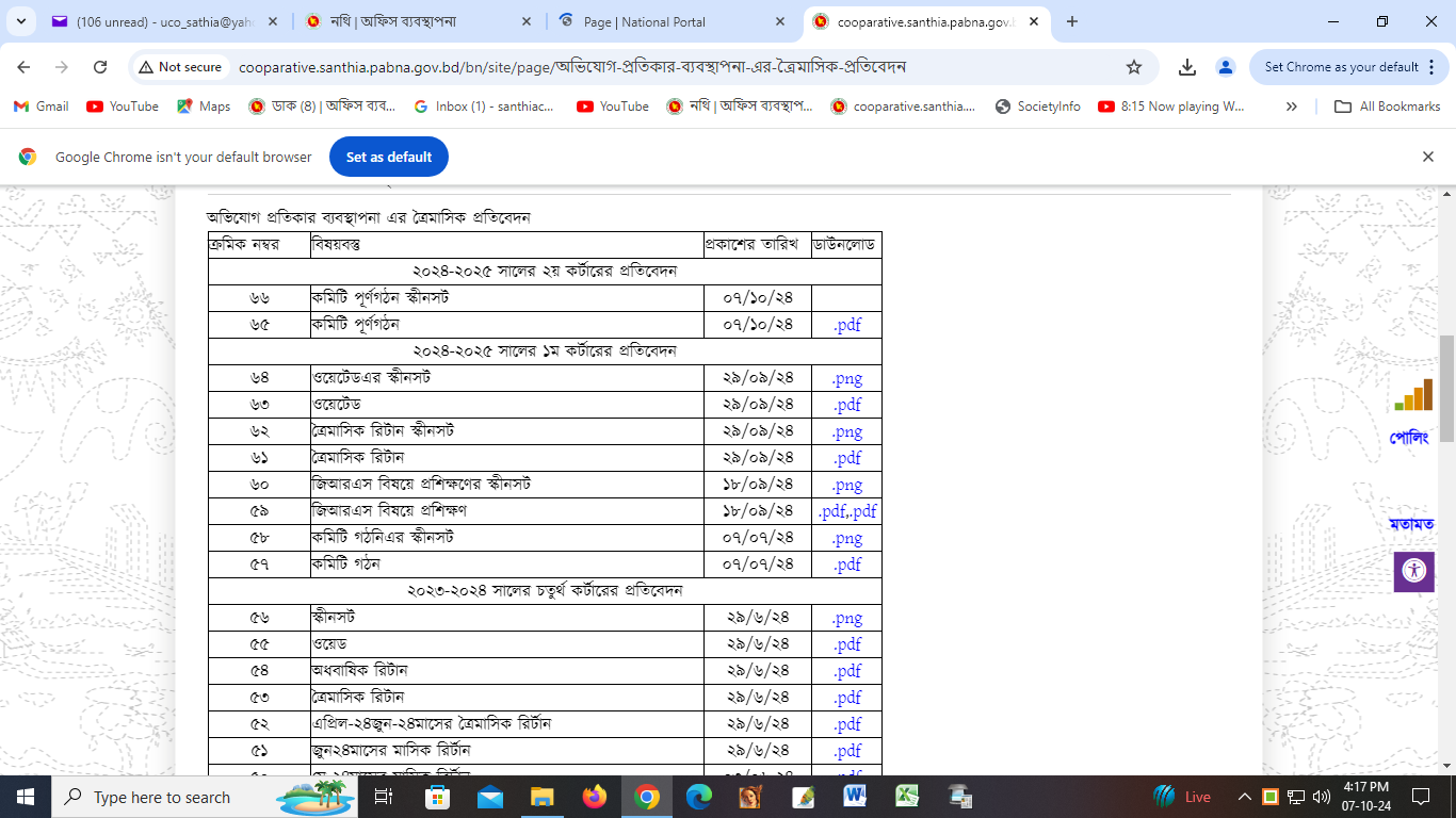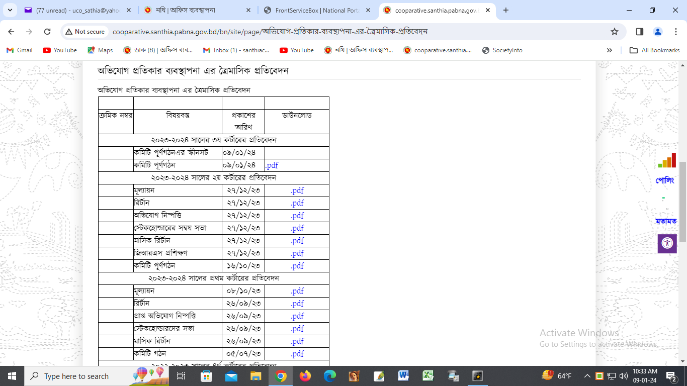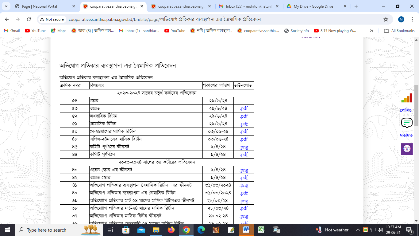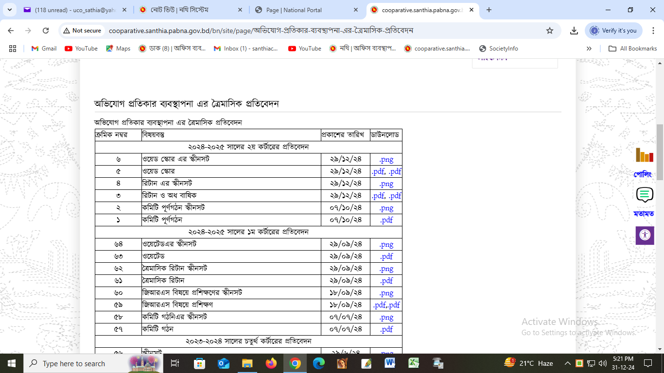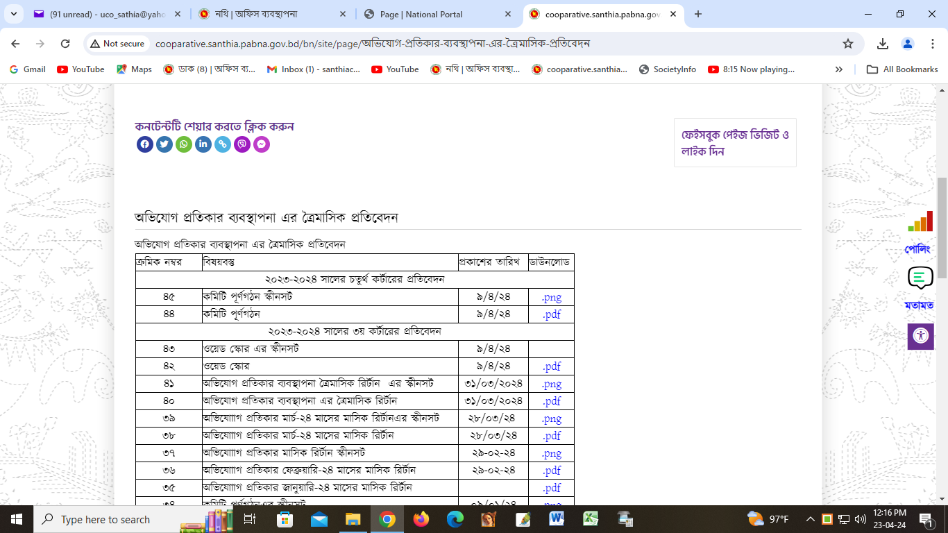 | ১০ | অভিযোগ এর ত্রৈমাসিক রিটান ও স্কীনসট | ২৩/০৩/২৫ | .pdf,.png |