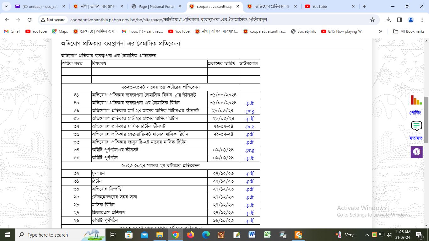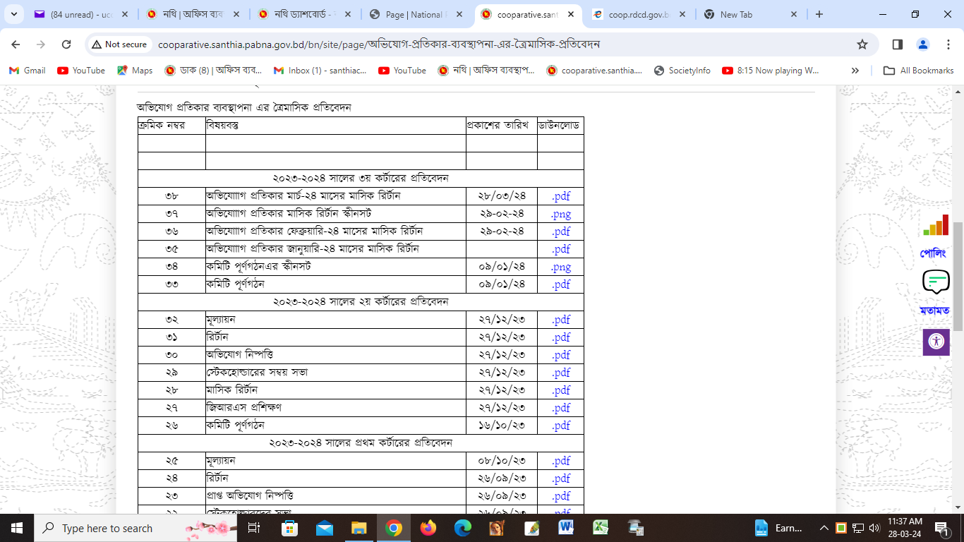 | ৩৯ | অভিযোাাগ প্রতিকার মার্চ-২৪ মাসের মাসিক রির্টানএর স্কীনসট | ২৮/০৩/২৪ | |
