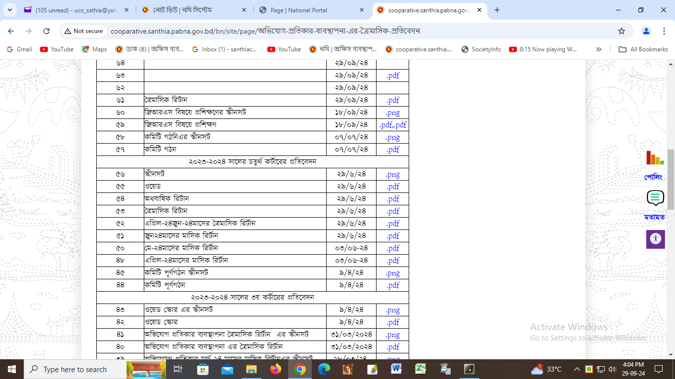 | ৬২ | ত্রৈমাসিক রিটান স্কীনসট | ২৯/০৯/২৪ | .png |