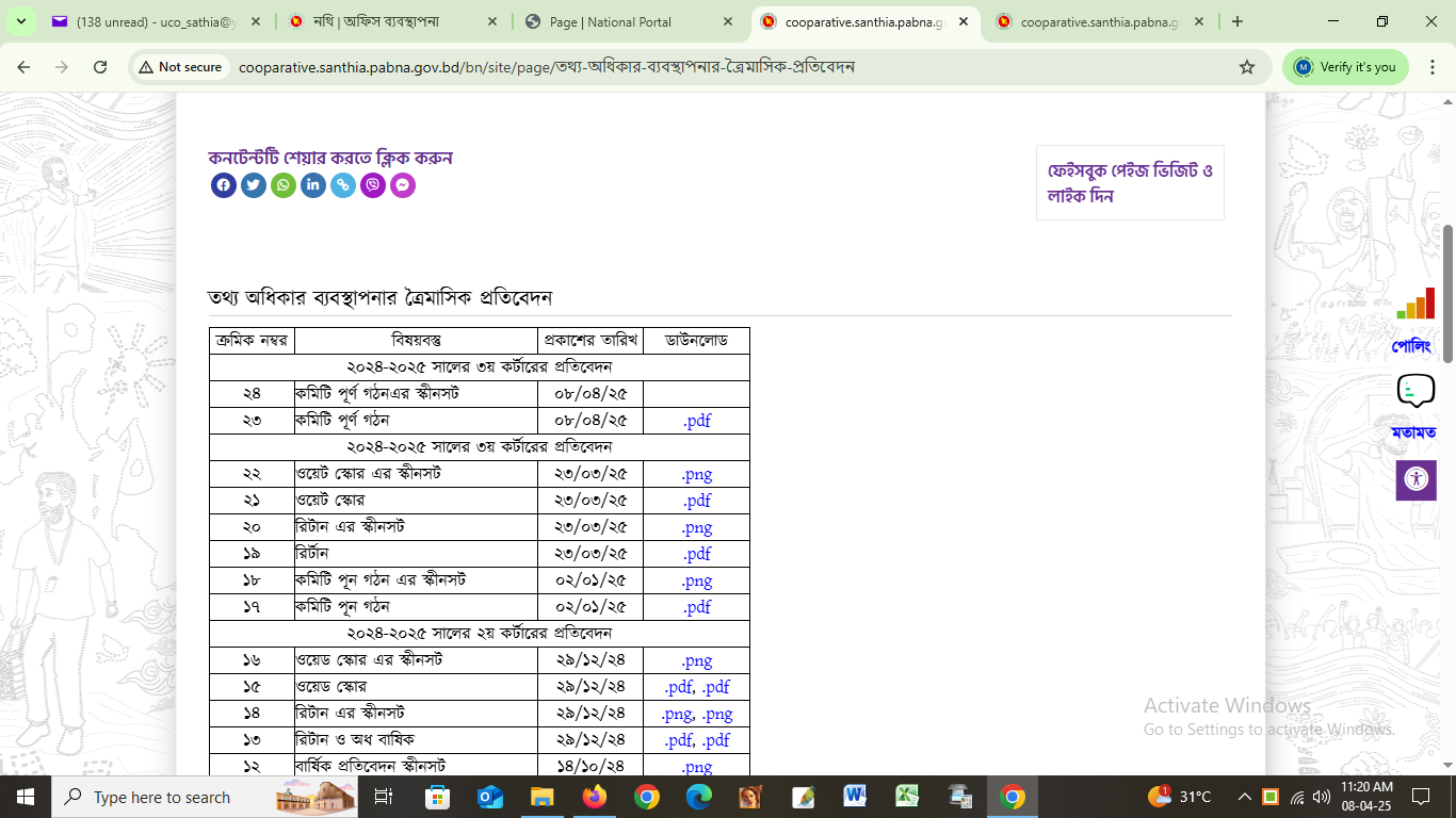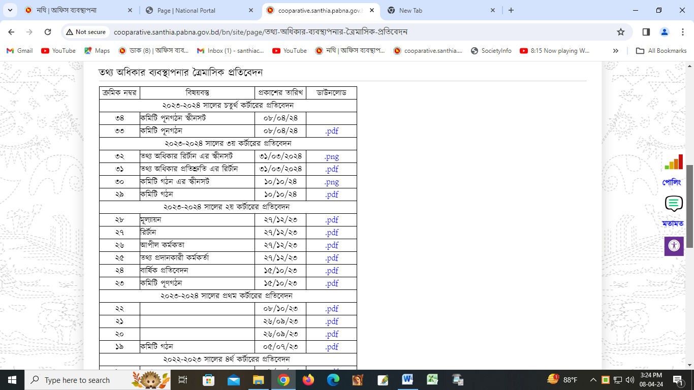 | ৩২ | তথ্য অধিকার রির্টান এর স্কীনসট | ৩১/০৩/২০২৪ | |